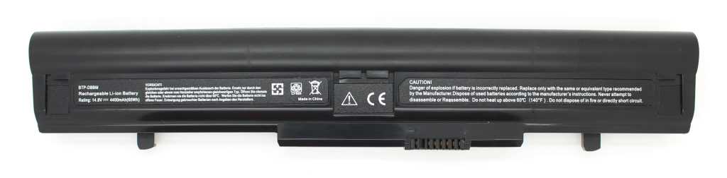 Lithium-Ionen-Laptopakku in schwarzer Ausführung mit 14,4V Nennspannung und 4400mAh Kapazität. Die kombinierte Energiereserve liegt bei 63,36Wh und unterstützt netzunabhängigen Betrieb, ohne dass eine feste Stromversorgung erforderlich ist. Die 14,4V definieren das Spannungsniveau für die Versorgung während des Akkubetriebs.