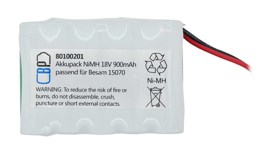 NiMH-Akkupack mit 18V Nennspannung und 900mAh Kapazität für die unterbrechungsfreie Stromversorgung in Türsteuerungen. Die Energiereserve beträgt 16,2Wh und unterstützt den Pufferbetrieb bei Spannungsschwankungen sowie bei Ausfall der Netzversorgung. Nickel-Metall-Hydrid ist für wiederholtes Laden ausgelegt und eignet sich für Anwendungen, in denen der Akkupack dauerhaft einsatzbereit gehalten wird.