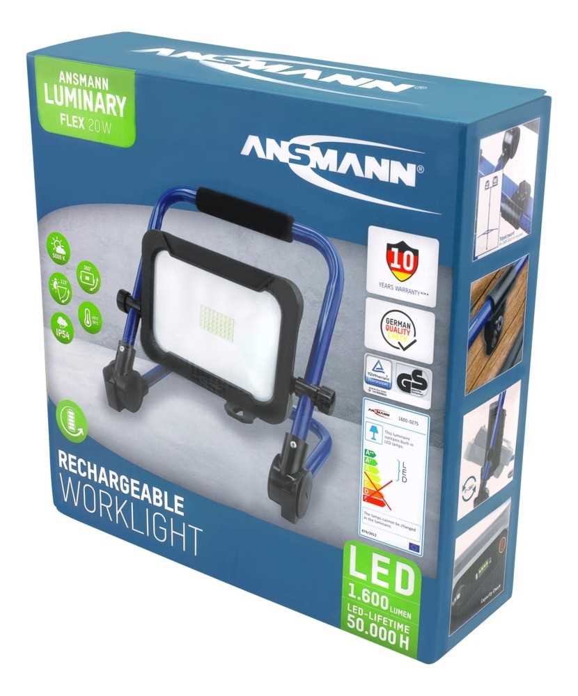 ANSMANN steht für Qualität und Zuverlässigkeit! Wir haben es uns zum Ziel gesetzt, hochwertige Qualitätsprodukte für Profis und Hobby-Handwerker anzubieten. Unser FL1600R ist ein professioneller Strahler mit SMD-LED-Technologie. Die zuverlässige ANSMANN Luminary Leuchte integriert sich mühelos in den anspruchsvollen Alltag für Arbeiten im und rund ums Haus, z.B. in Werkstätten, Baustellen, Industrie, Haus, Garten, Hof oder Garage.