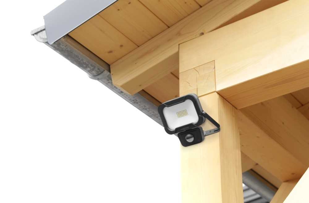 Strahler mit 30W LED erzeugt eine Leuchtleistung von 1600lm (Lebensdauer: 50.000h). Der Abstrahlwinkel der Lampe beträgt 110°, wobei sich der Lampenkopf für eine ideale Ausleuchtung stufenlos verstellen lässt