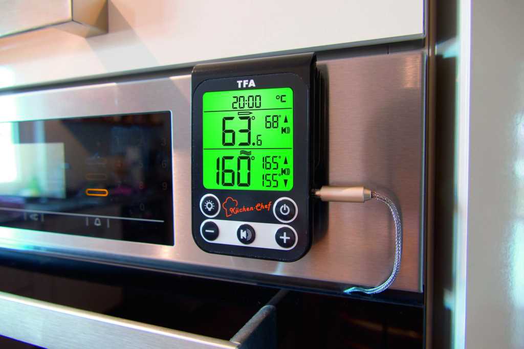 • Zur optimalen Zubereitung von Fleisch und Geflügel durch gleichzeitige Überwachung der Kerntemperatur und der Ofentemperatur mit Temperaturober- und Untergrenze