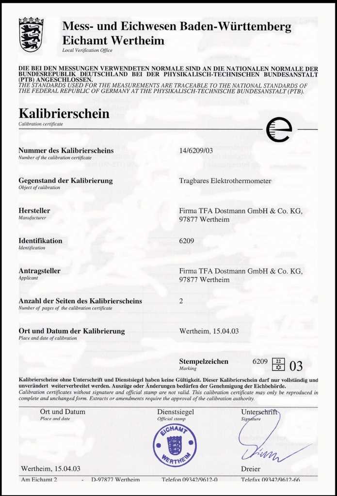 • geprüft mit 2 Messpunkten (0°C/+60°C)