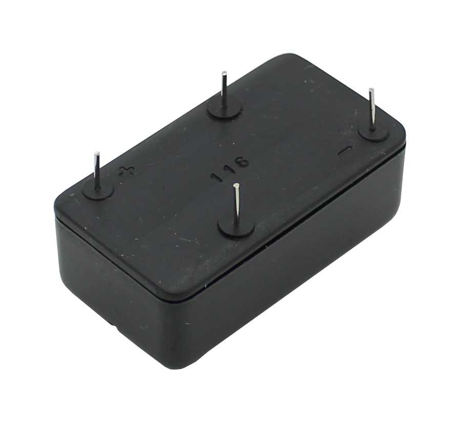 Ausgeführt mit Print 2/2pin im Polbild ++--, sodass je Anschlussseite ein Doppelprint für Plus und Minus vorhanden ist. Die doppelte Kontaktierung vergrößert die Auflagefläche am Lötpunkt und unterstützt eine mechanisch stabile, positionsgenaue Montage auf der Platine, besonders bei Vibrationen oder wiederkehrenden Temperaturwechseln.
