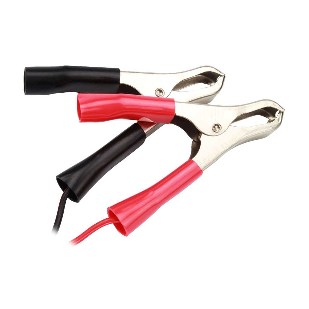 Mit ein paar Handgriffen ist das Prüfgerät an den Polen der Starterbatterien mittels farblich gekennzeichneter Klemmen angeschlossen. Ein Kurzschluss oder Verpolen ist durch eingebauten Schutz nicht möglich.