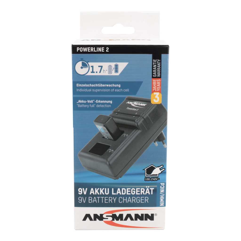 Das mikrocontrollerüberwachte Ladegerät Powerline 2 kommt ohne jegliche Bedienelemente aus und bietet dank vollautomatischer Steuerung eine übersichtliche und einfache Handhabung. Der Akku-Ladestand vor Ladebeginn ist ohne Bedeutung. Das Ladegerät ist für sämtliche Markenakkus (NiMH/NiCd) und Akkubatterien geeignet.