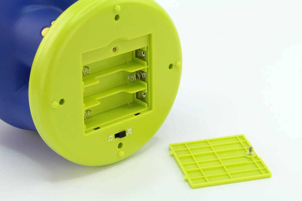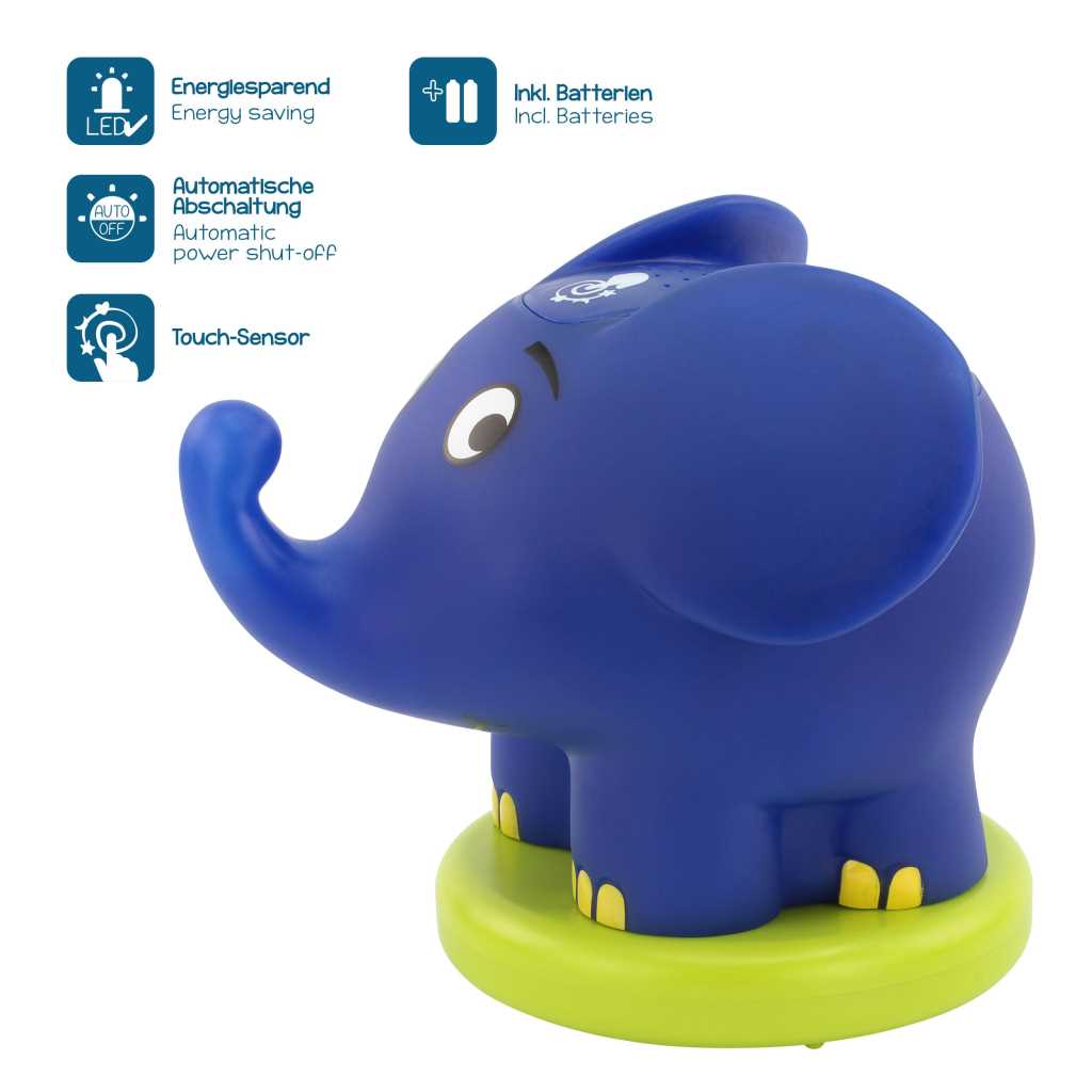 Das Batteriefach ist kindersicher verschraubt, um einen unberechtigten Zugriff von Kleinkindern auf die Batterien zu verhindern. Als Lichtquelle werden energiesparende LEDs verwendet. Hierdurch ist sichergestellt, dass sich das Nachtlicht nicht erwärmt.