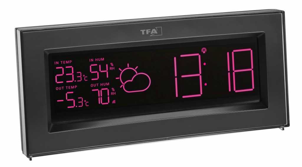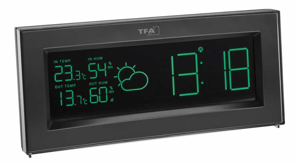 • kabellose Übertragung der Außentemperatur und Luftfeuchtigkeit über Sender (max. 100 m)