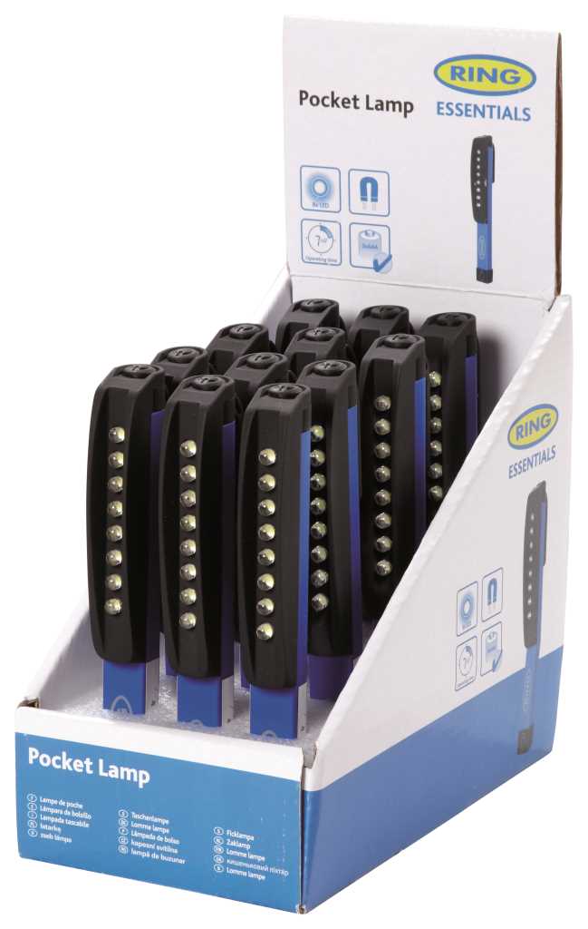 Ring RIL54 LED pocket lamp 12 helle, multifunktionale LED-Inspektionslampen im praktischen Thekendisplay