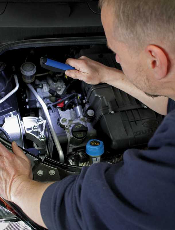 Praktisches Thekendisplay bestückt mit 12 kleinen Ring Automotive Inspektionslampen.
